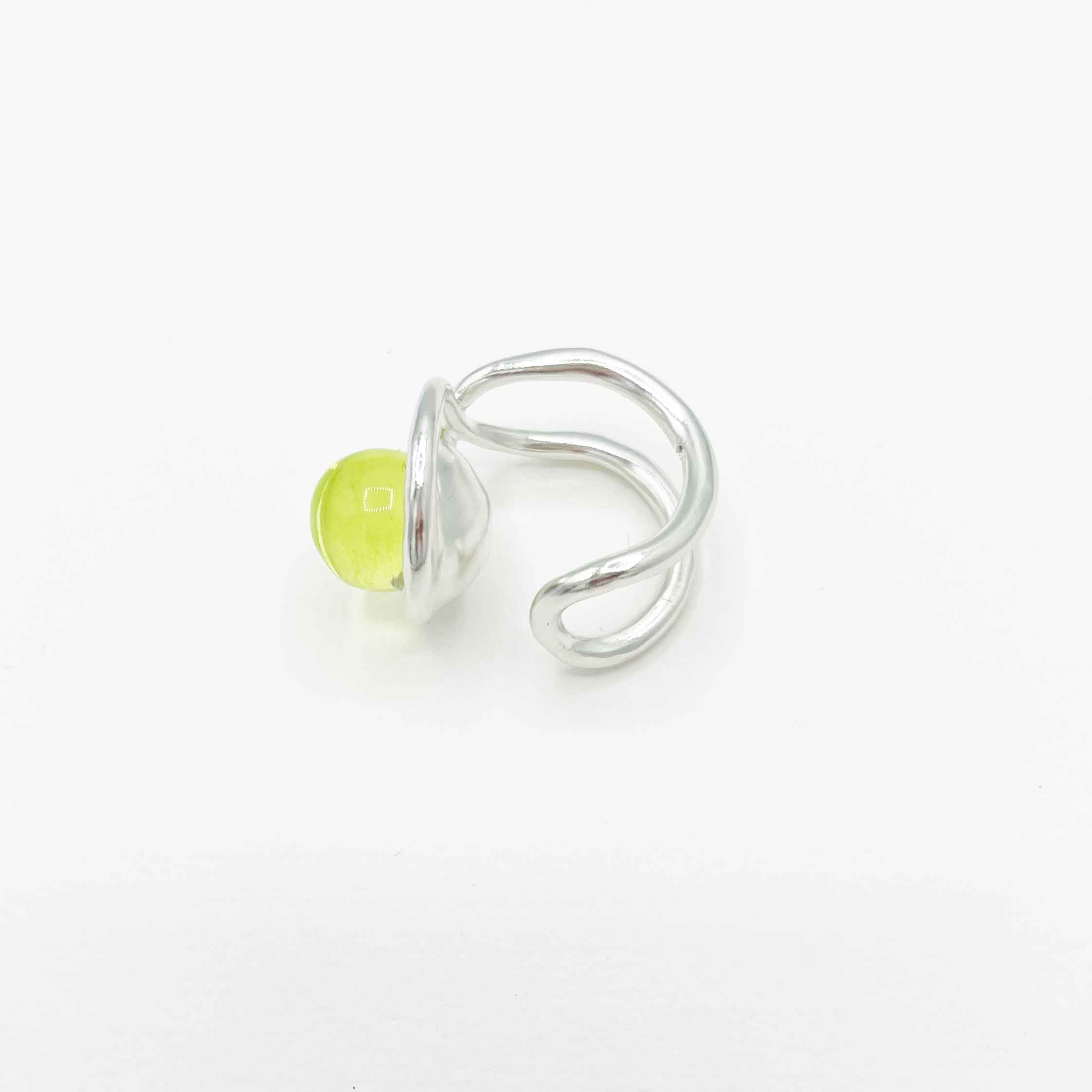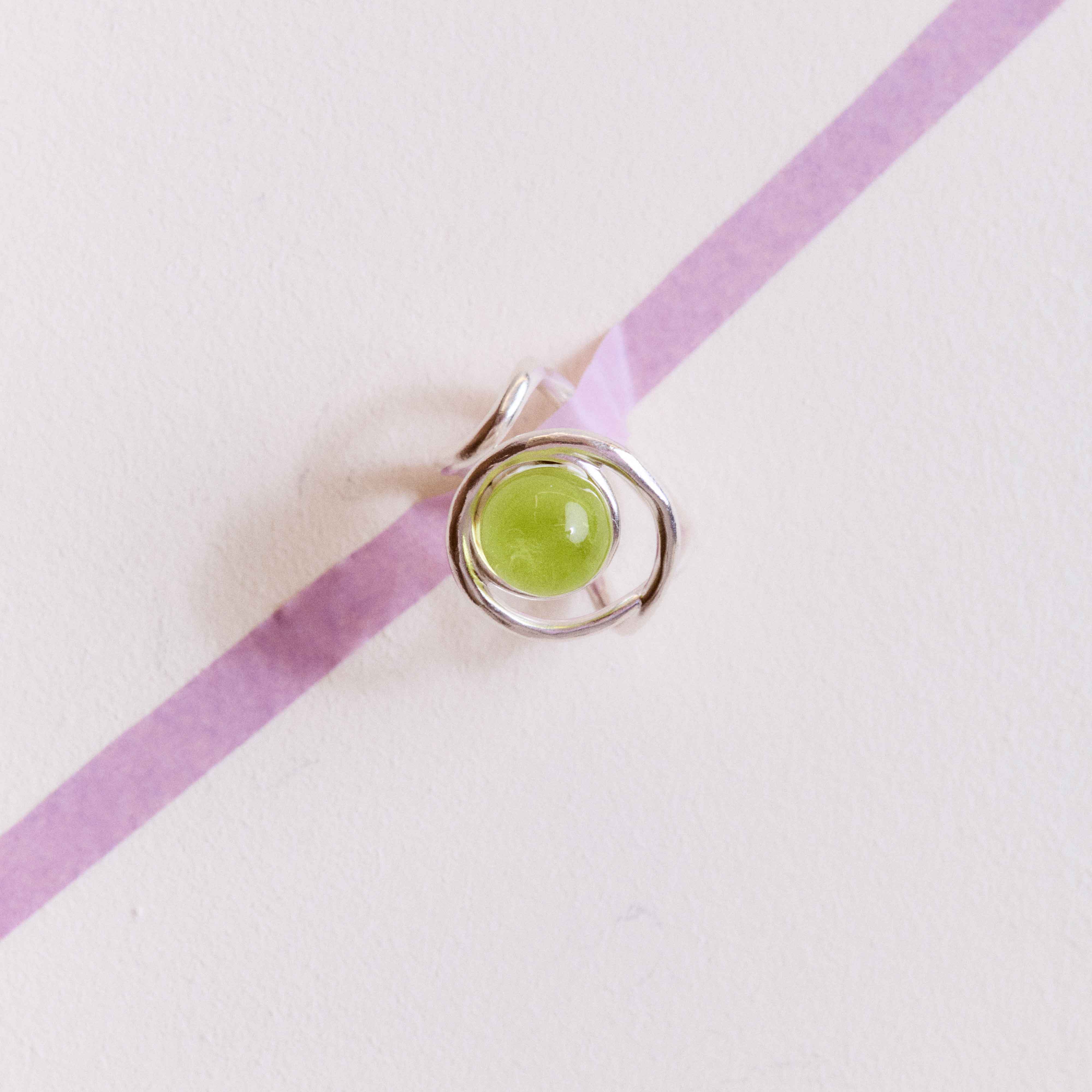Elle a un sertis entrelacé avec une perle XL en verre de Murano fabriquée dans la Drôme. Chaque perle en verre est fabriquée de manière artisanale et fait toute sa singularité. chacune présente des inclusions dans le verre et des formes légèrement irrégulières.