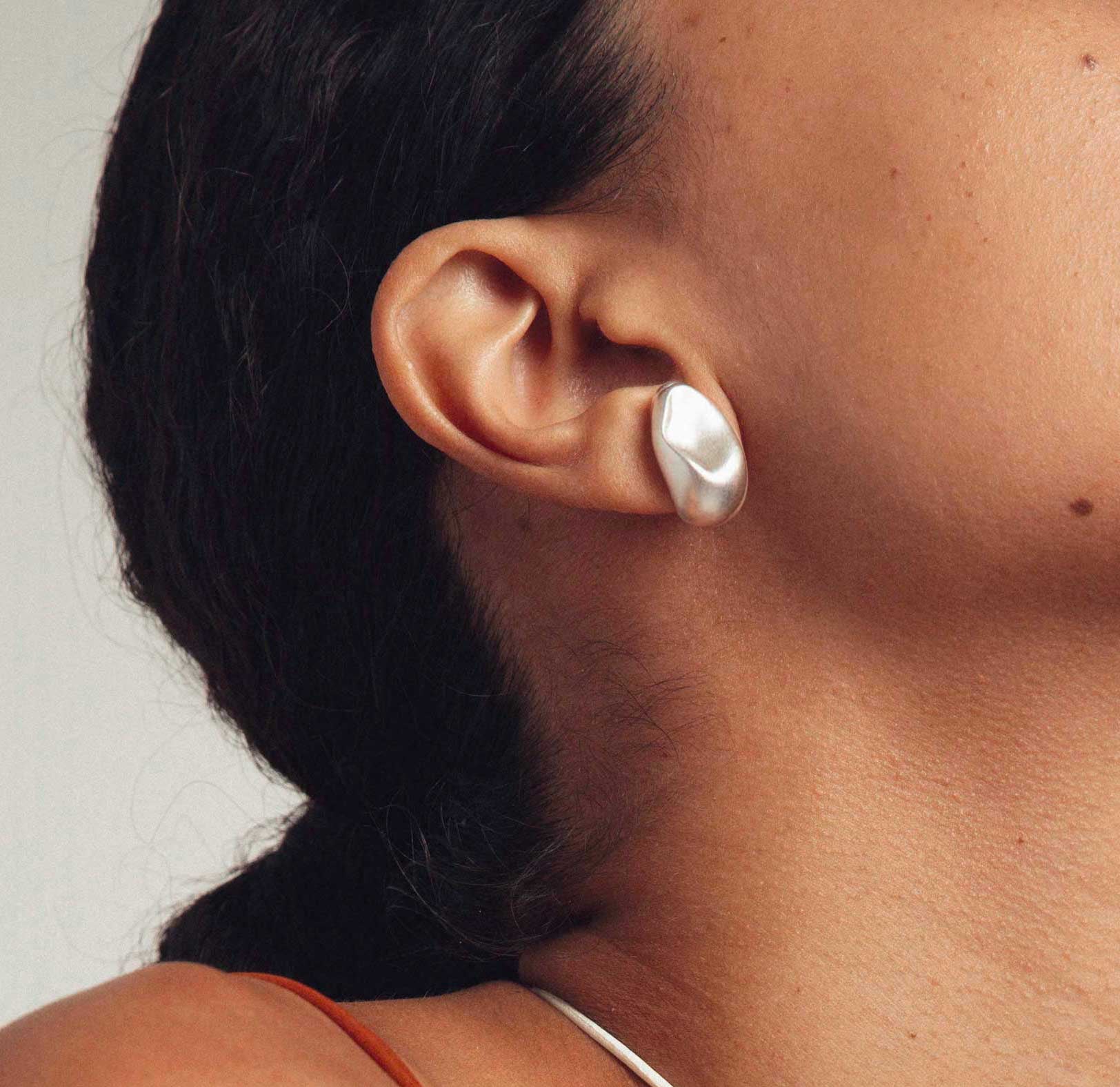les gouttes Double Coeurs épousent parfaitement le lobe d'oreille. Elles ont une texture nacrée en rond et en creux et évidées au dos pour un maximum de confort au porté.