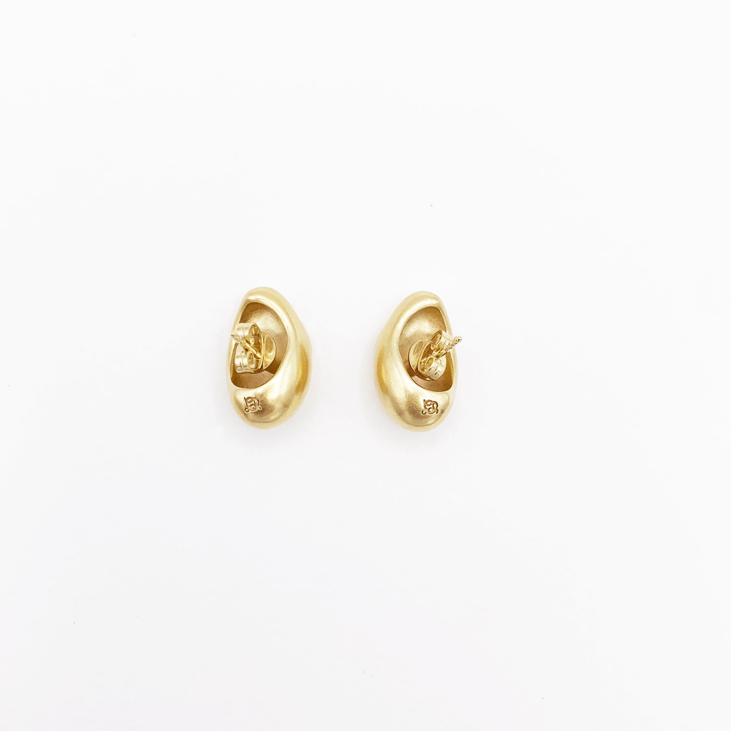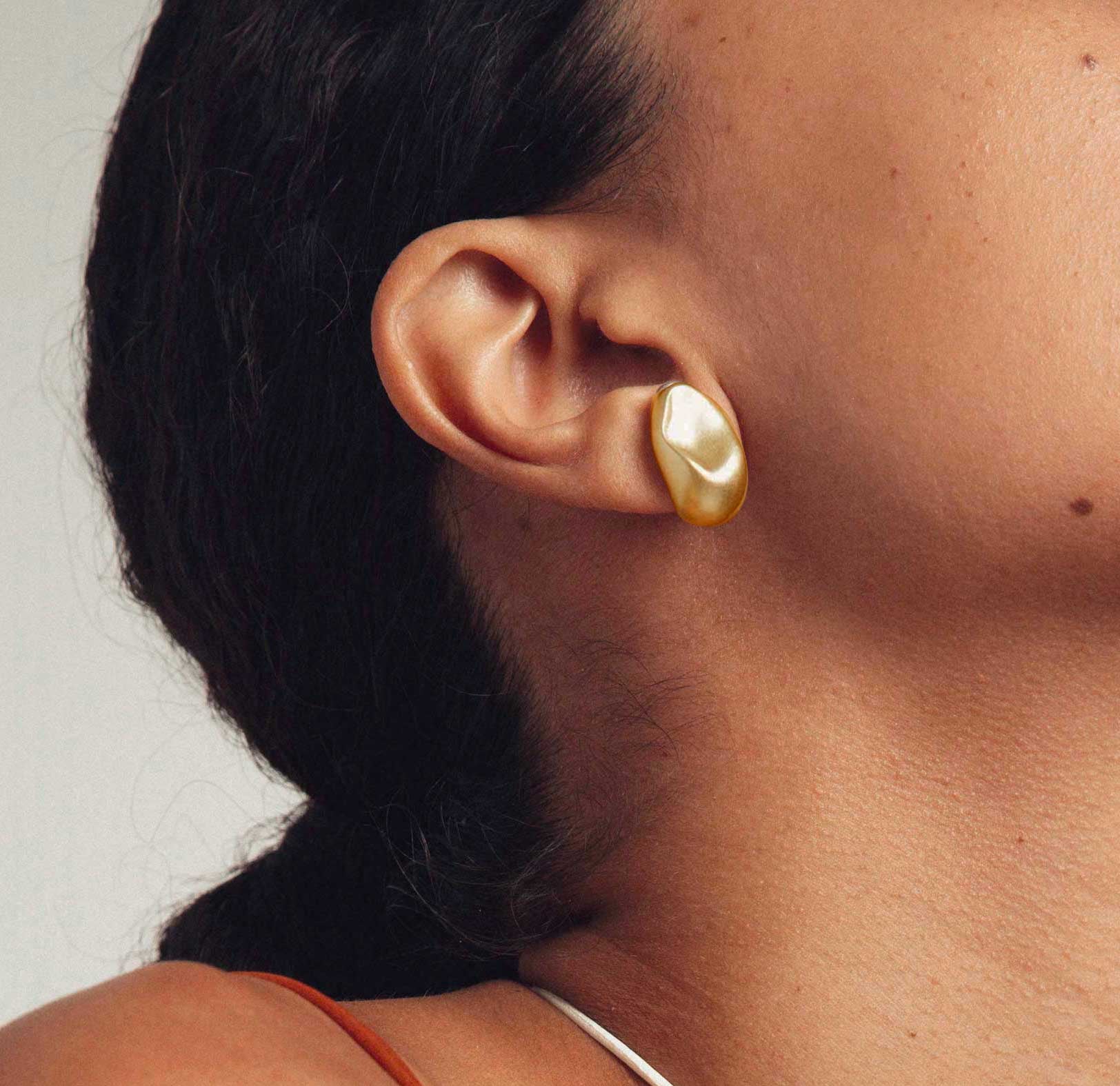 les "gouttes double coeurs" épousent parfaitement le lobe d'oreille. Elles ont une texture nacrée en rond et en creux et évidées au dos pour un maximum de confort au porté.