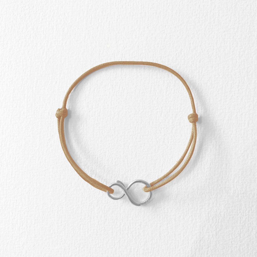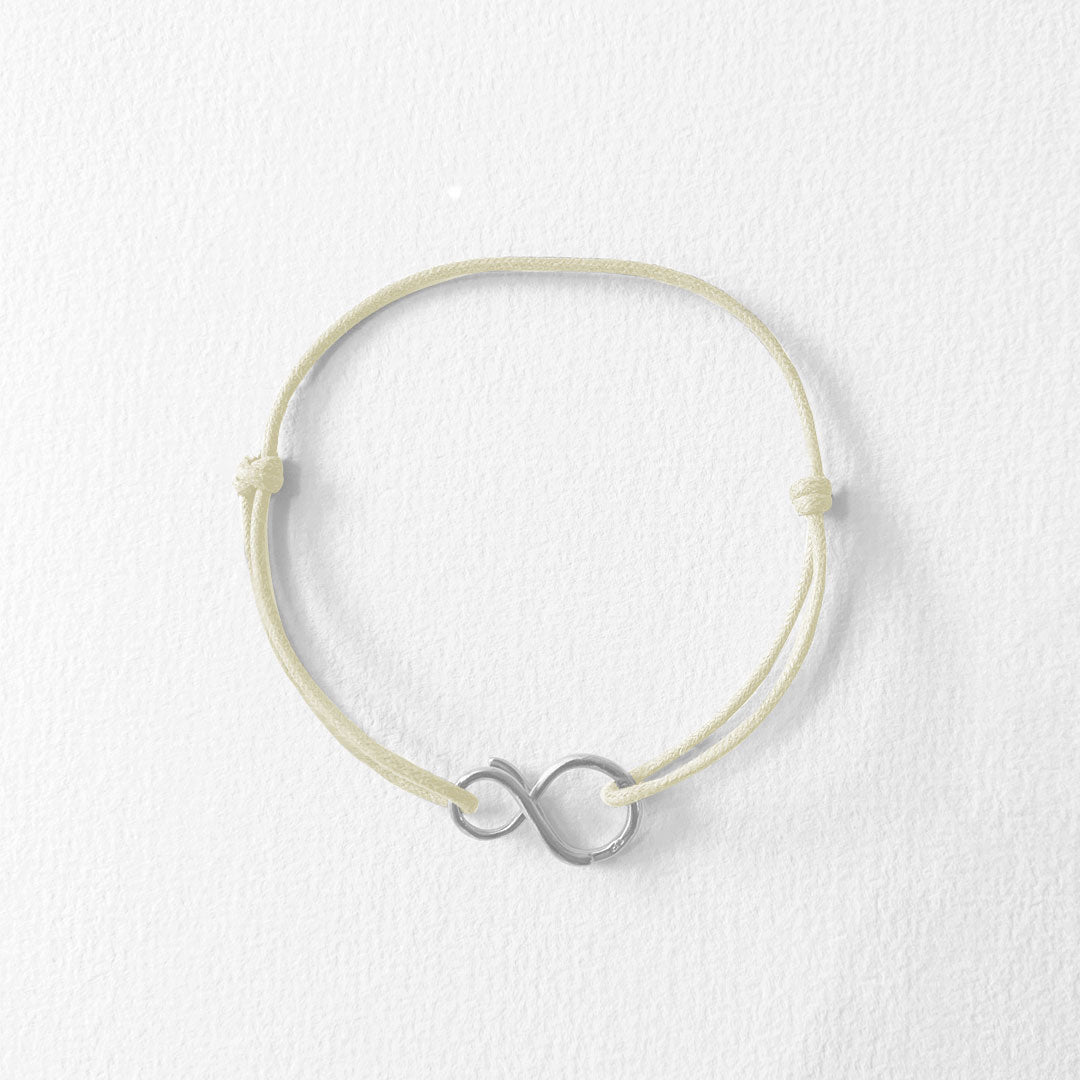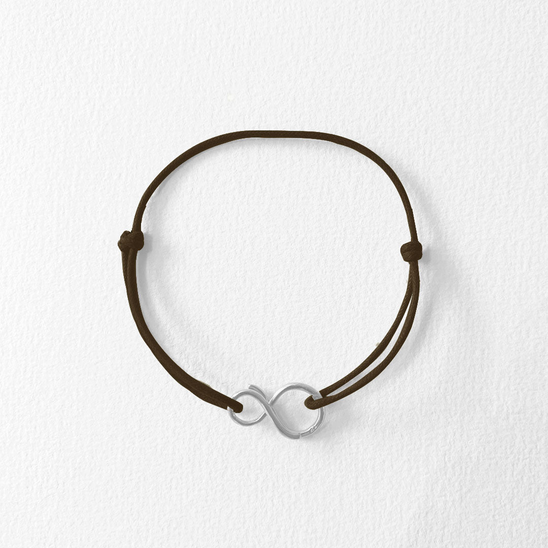 Le bracelet cordon mini infini est composé d'un fermoir mini infini sur lien ajustable, en coton ciré.