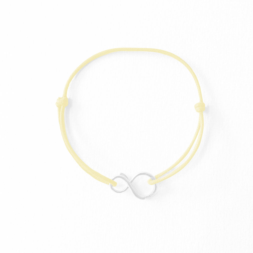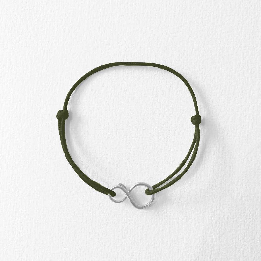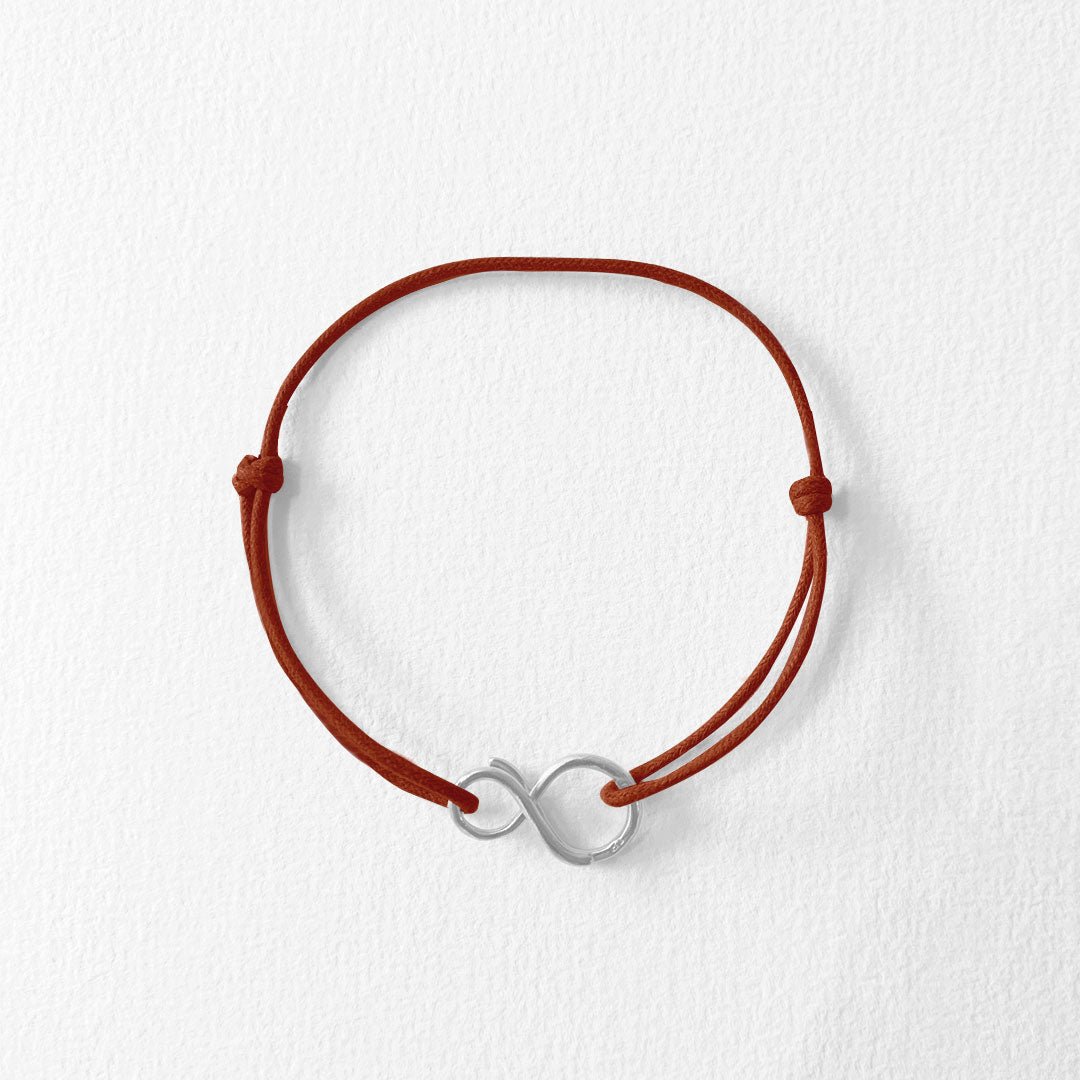 Le bracelet cordon mini infini est composé d'un fermoir mini infini sur lien ajustable, en coton ciré.