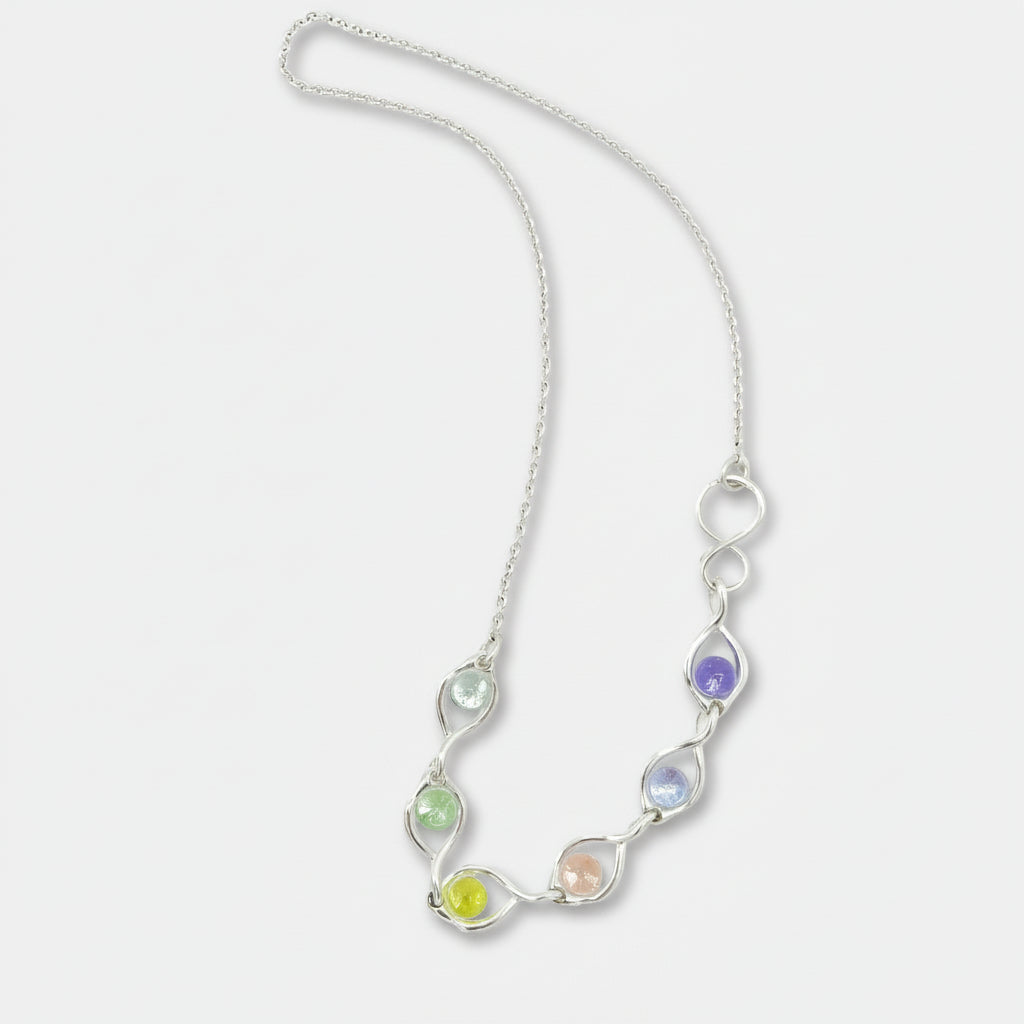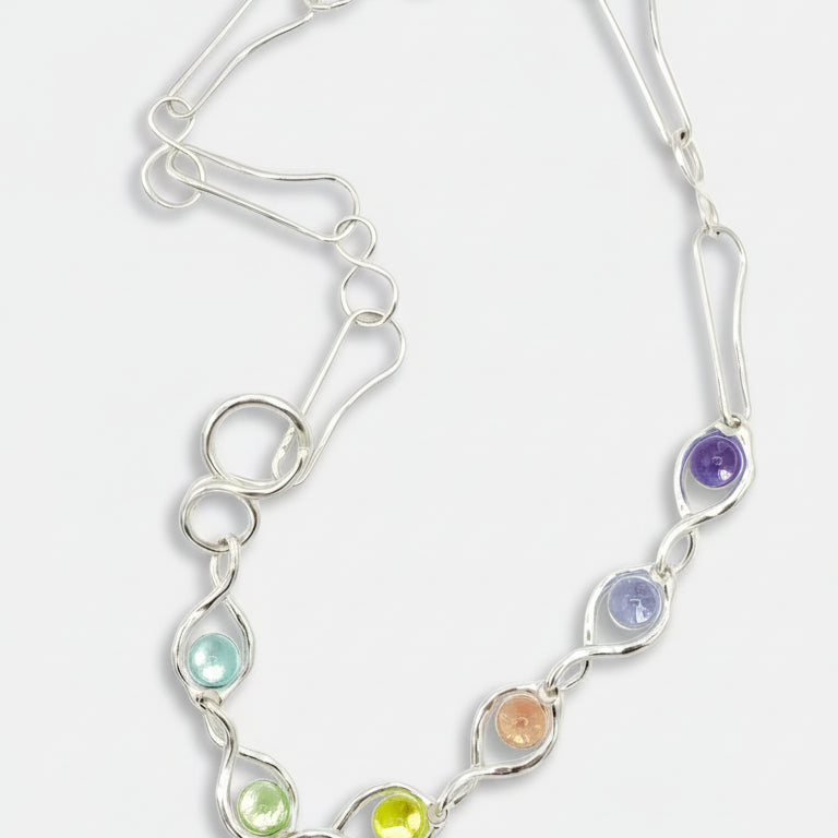 Pensé pour être porté à l’avant, il relie nos créations entre elles et offre la liberté de les transformer : deux colliers qui s’assemblent, un sautoir qui naît, une histoire qui continue de s’écrire.