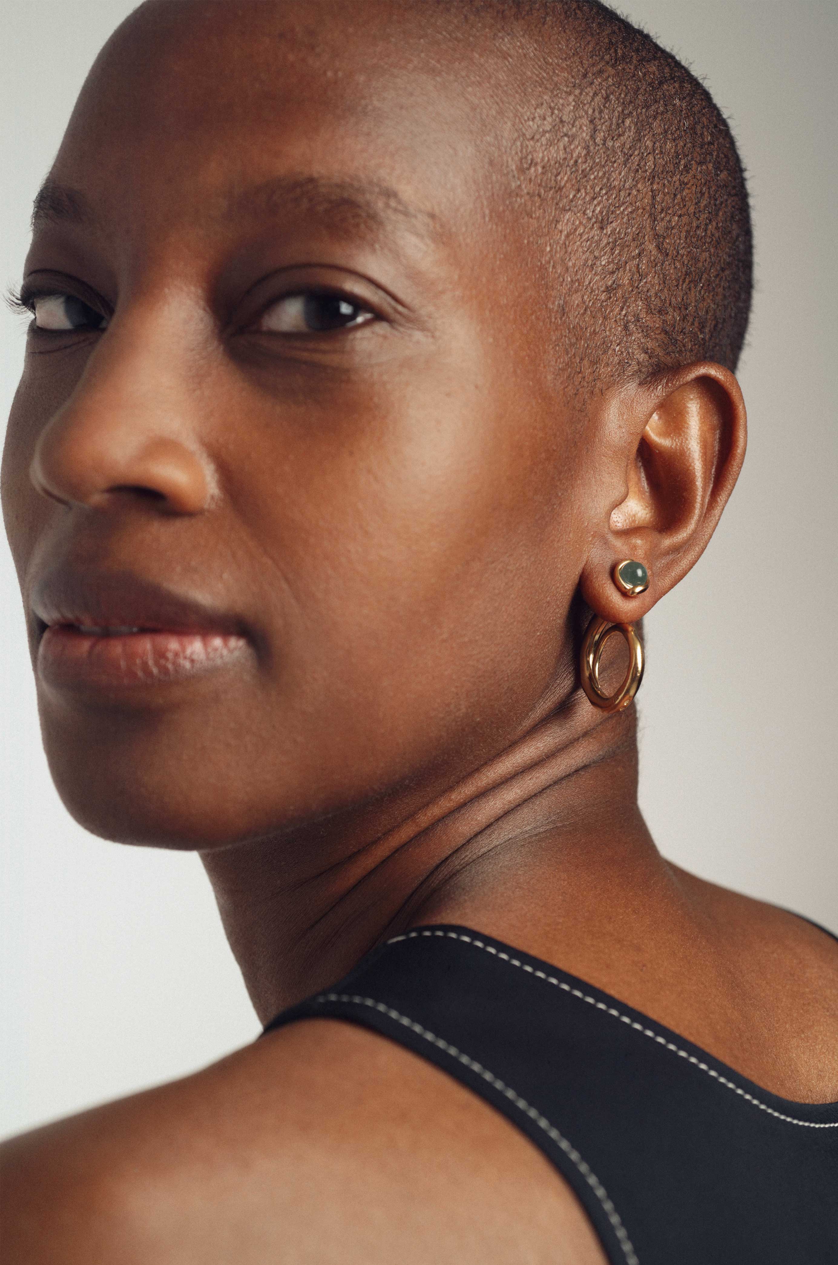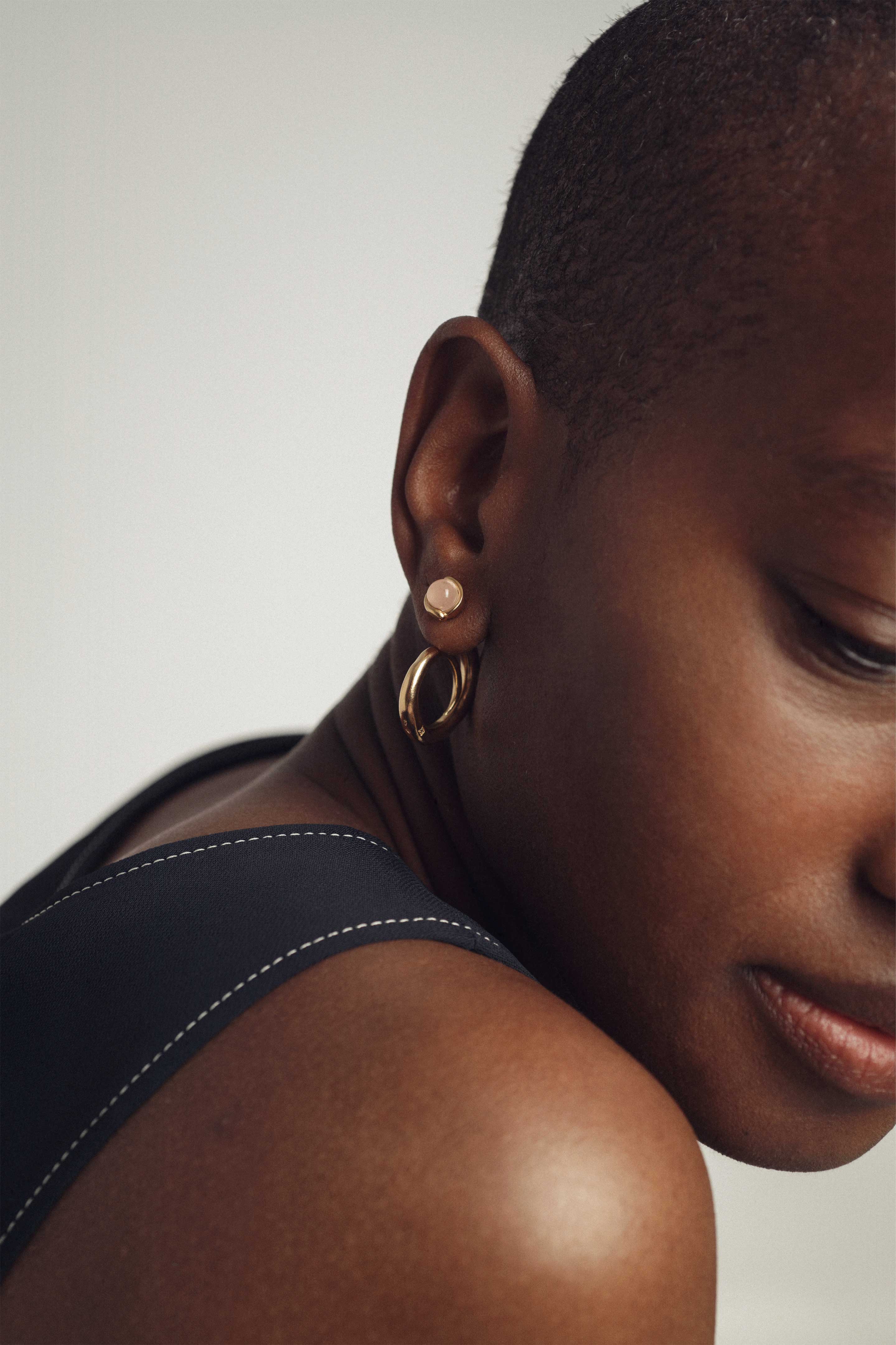 1- en créole, avec le clou devant le lobe et la créole au dos