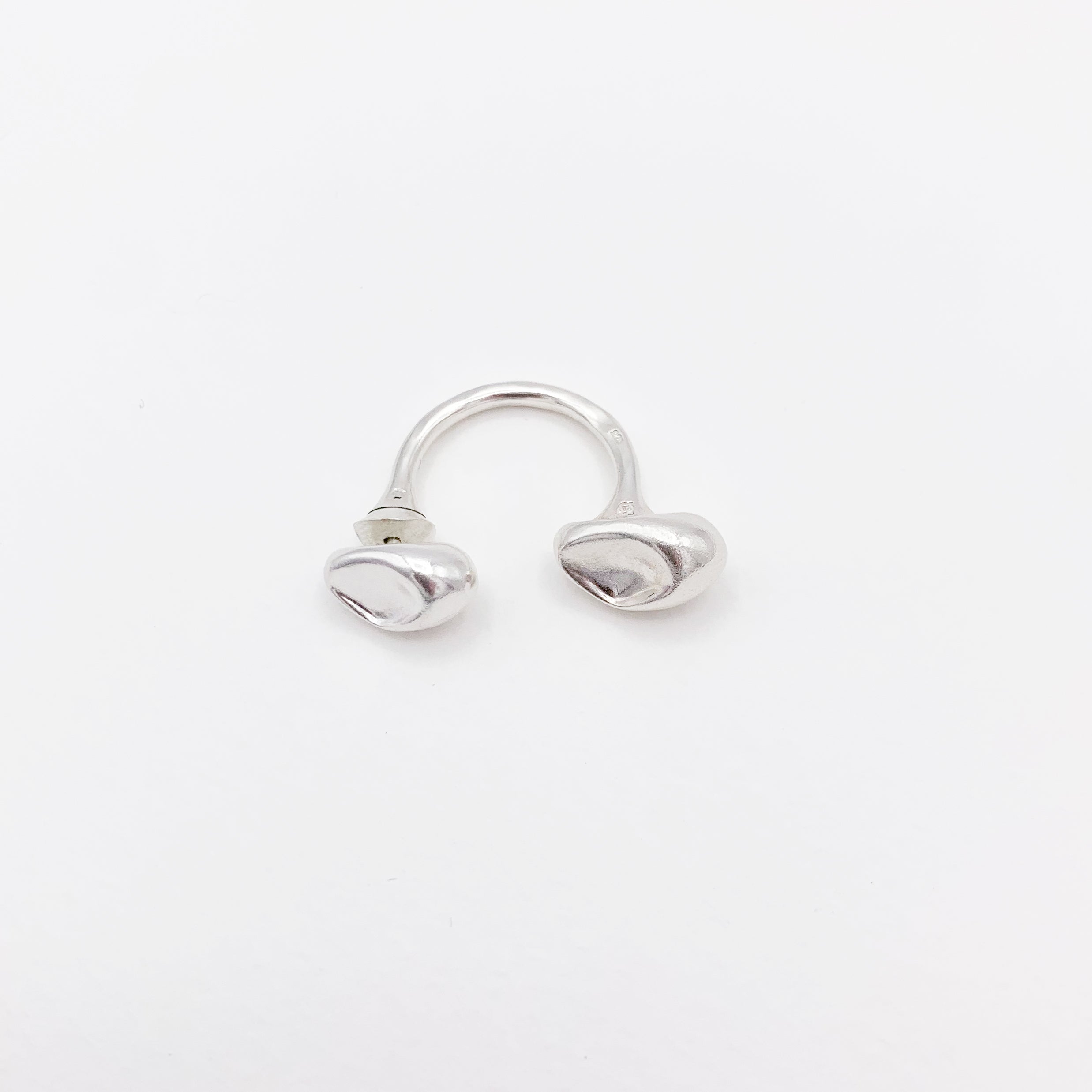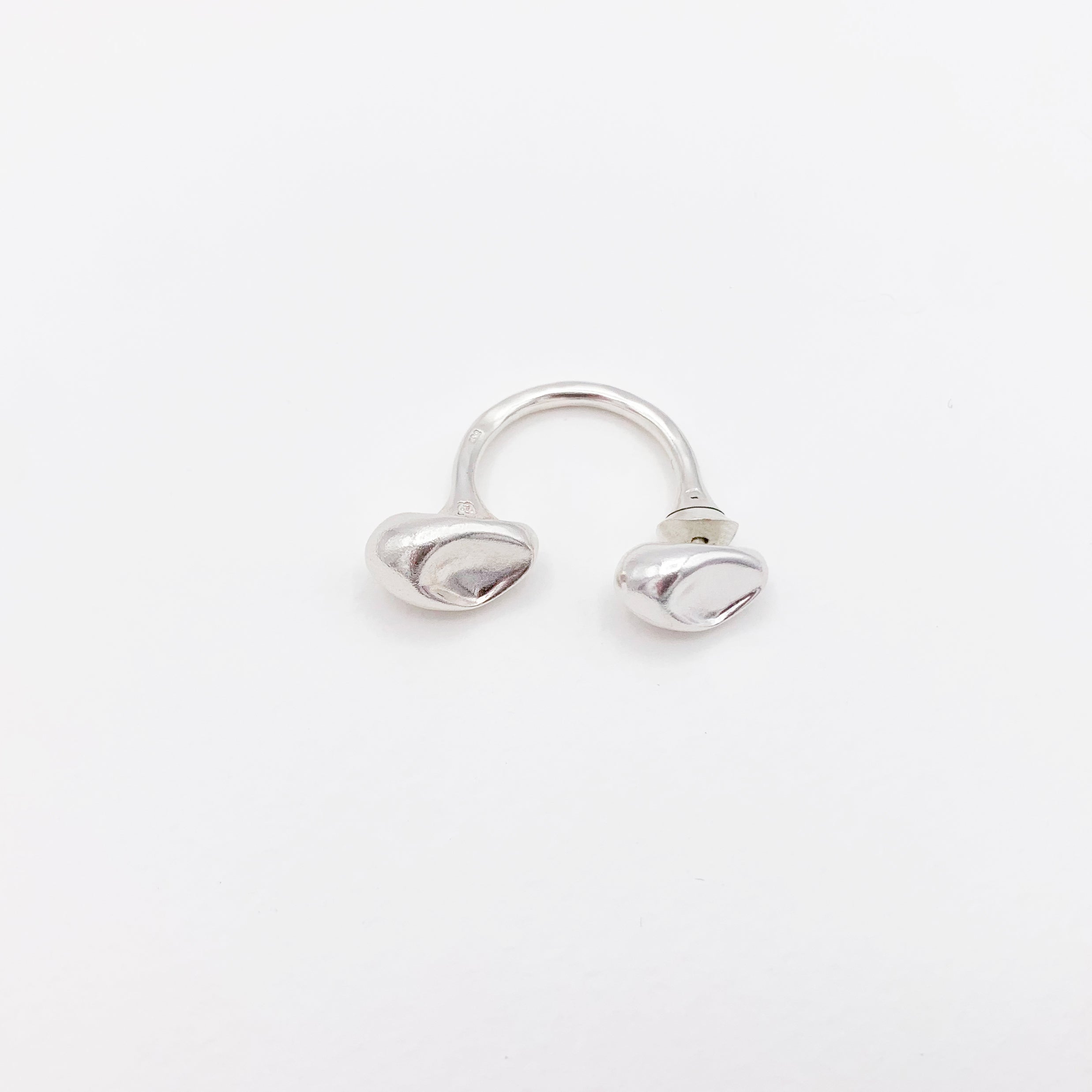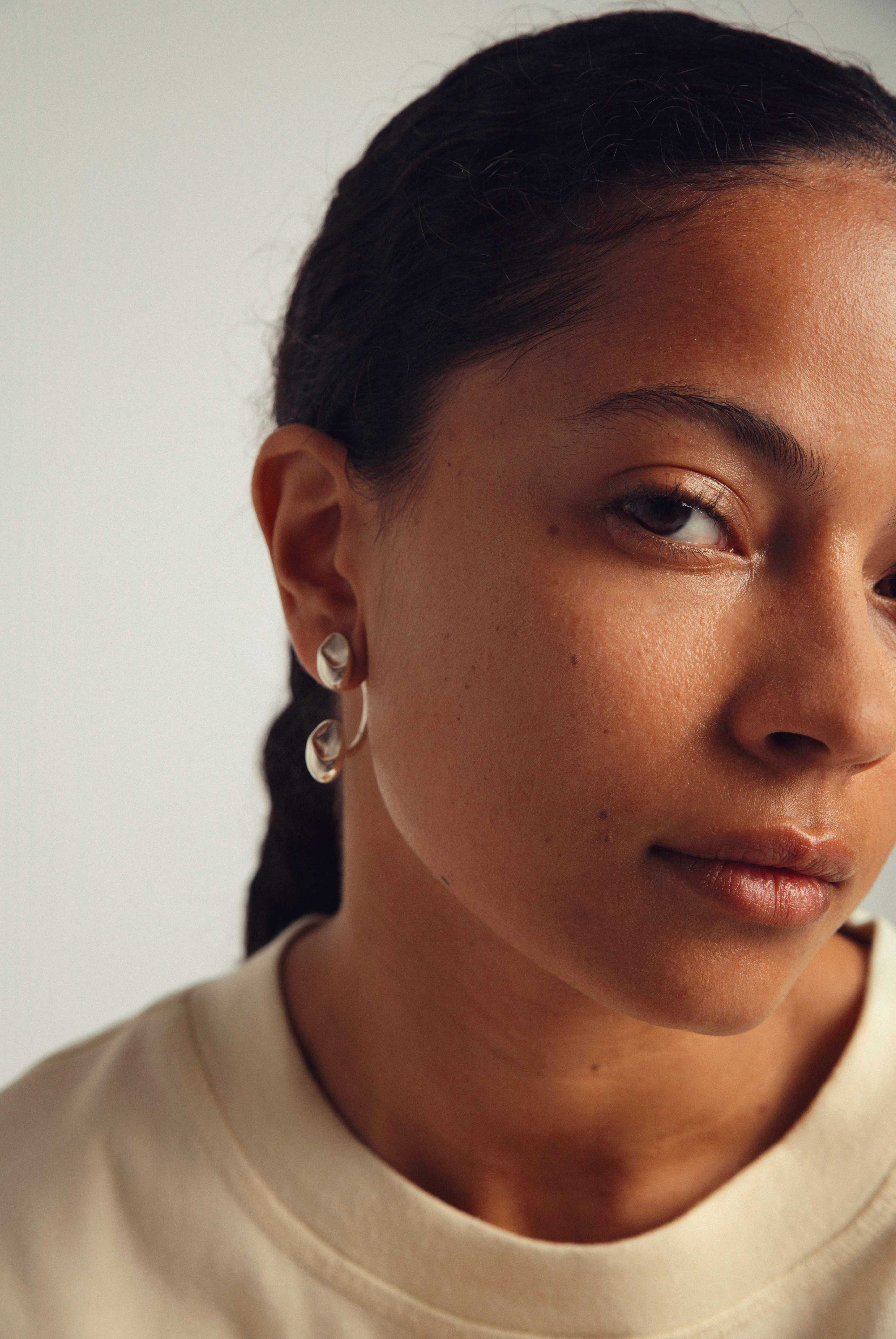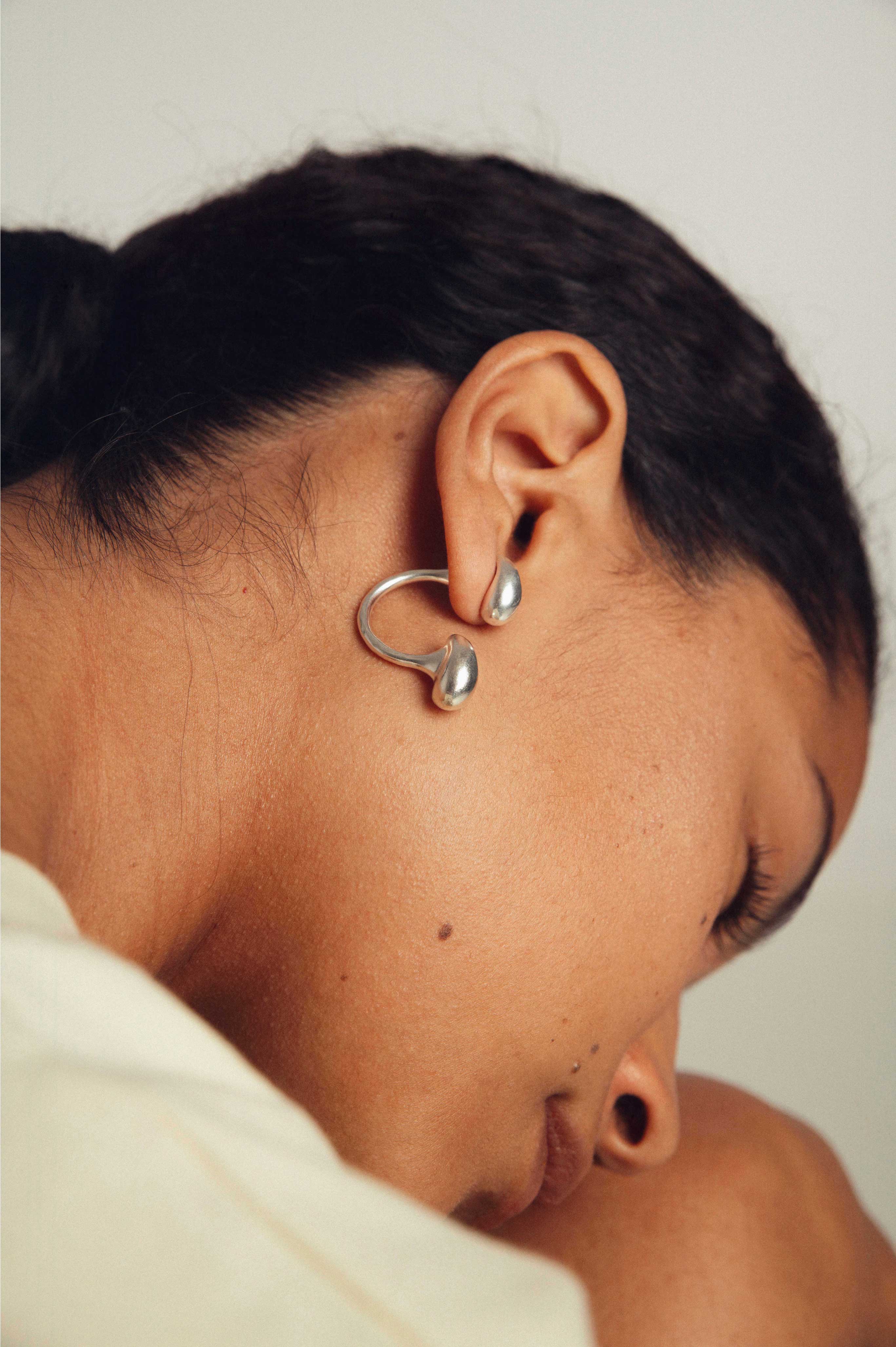 1ère façon : le clou coeur devant et la creole au dos qui se finit par un 2ème clou "coeur".Ce premier porté définit 2 gouttes "coeur" comme suspendues dans le vide.