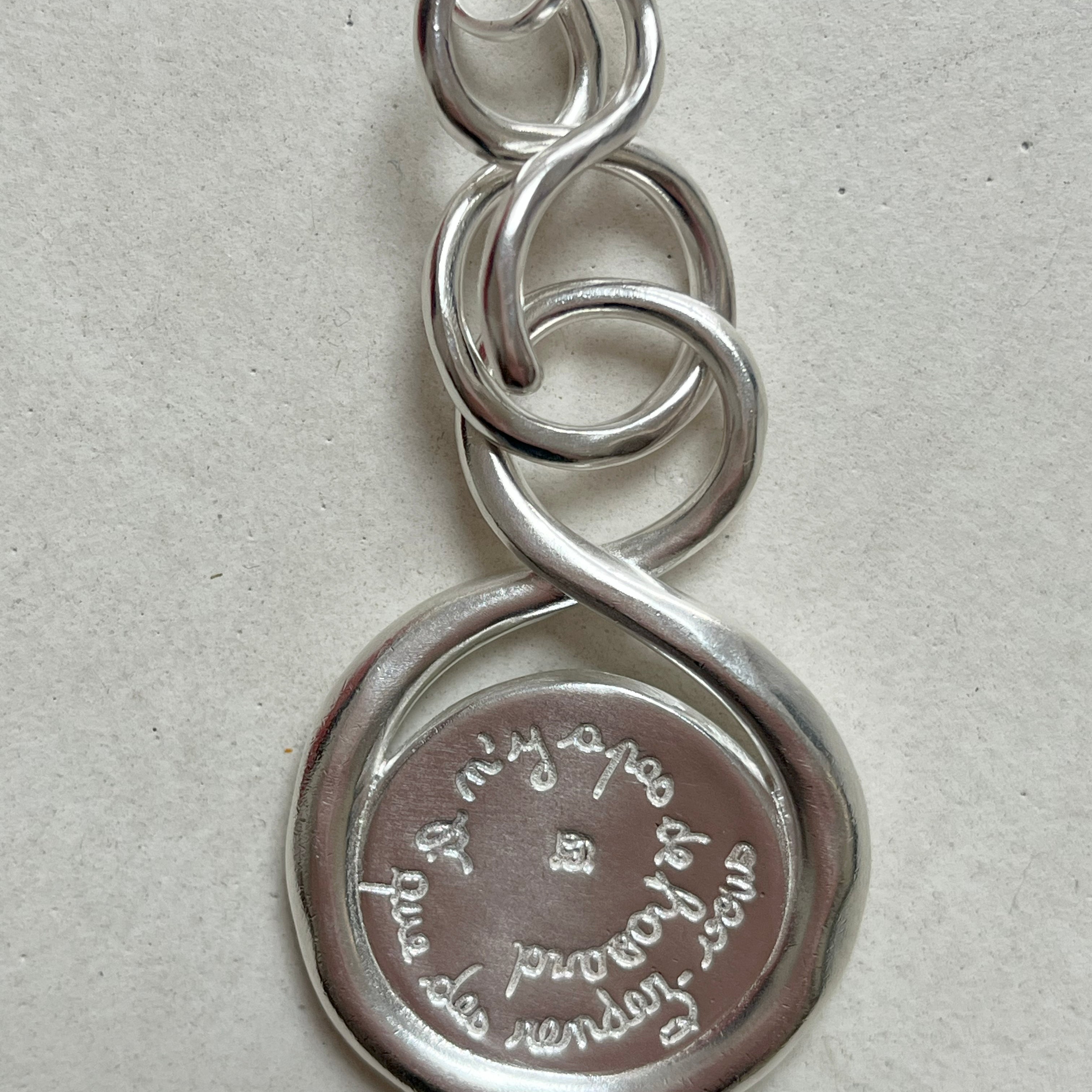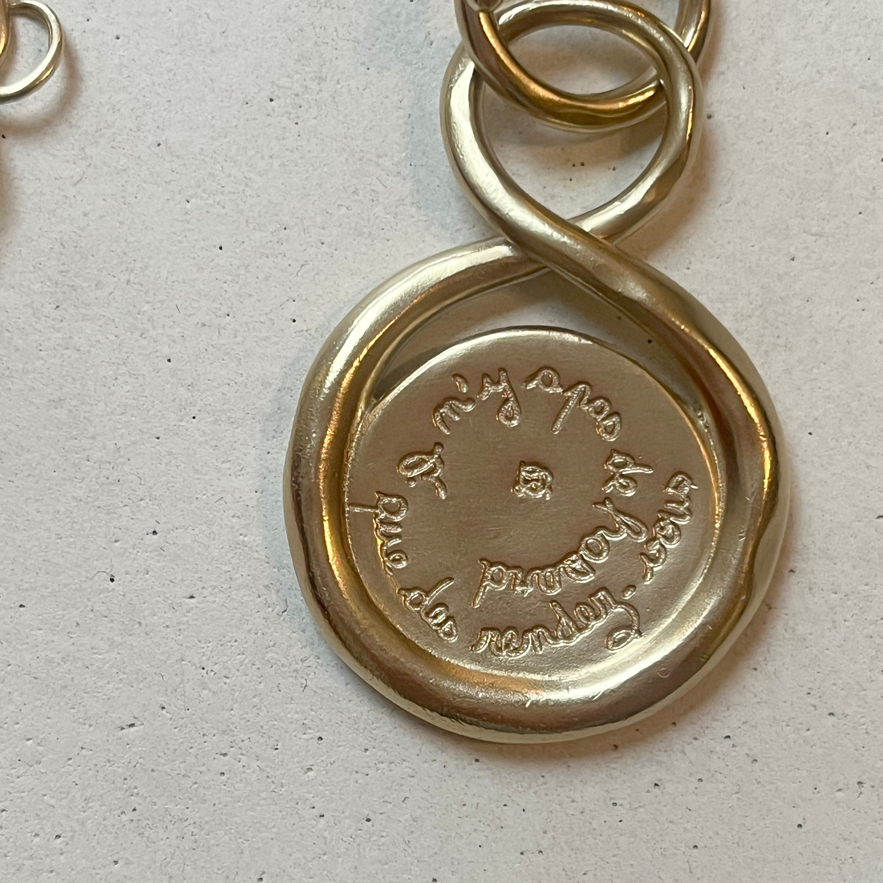 Ce bijou est un rendez-vous. Co-créée avec passion, il symbolise ce qui réunit nos deux univers : l’amour des belles rencontres associé à celui du savoir-faire. Ce bijou a été créée pour être porté, touché, chéri. Nous vous souhaitons autant de plaisir à le porter que nous en avons eu à l’imaginer.»