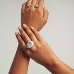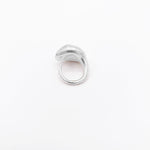 The HEART RING is almond-shaped, round and hollow on the top, with a slightly pearly texture, giving the effect of molten metal.