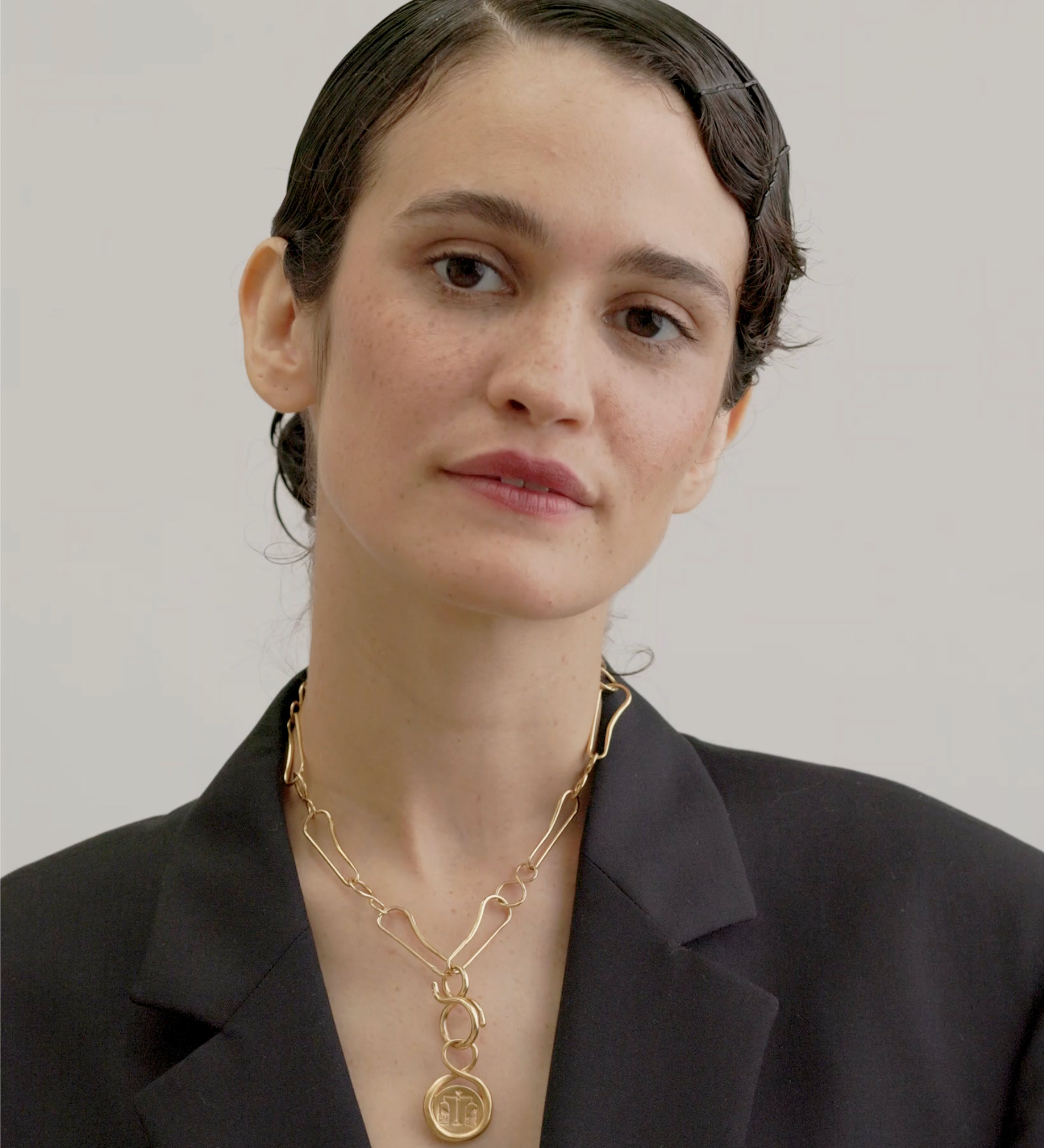 The clasp can be worn on the front and allows you to clip “Les Astres” medals or personal talismans.